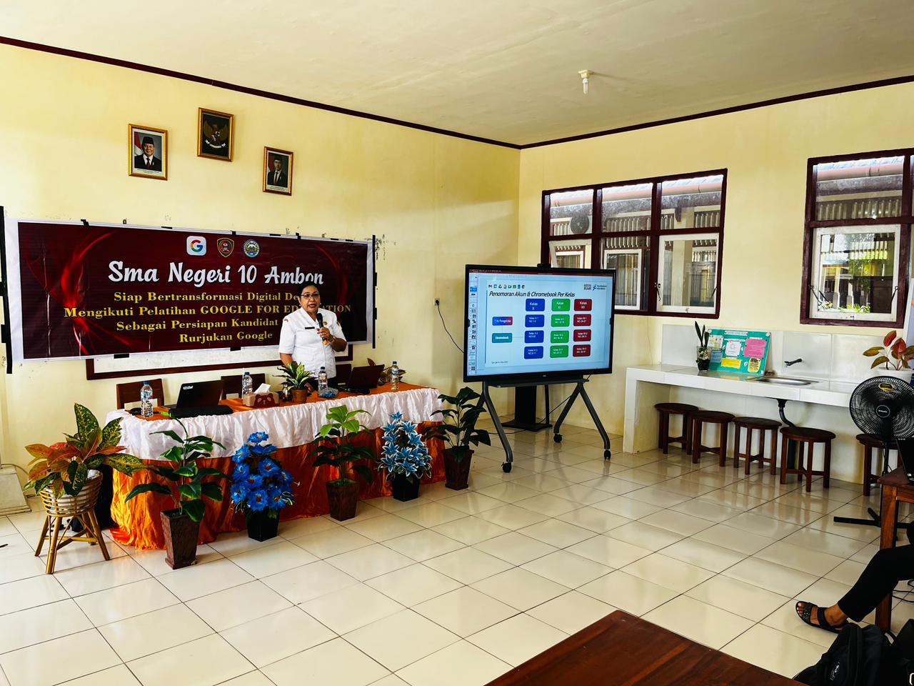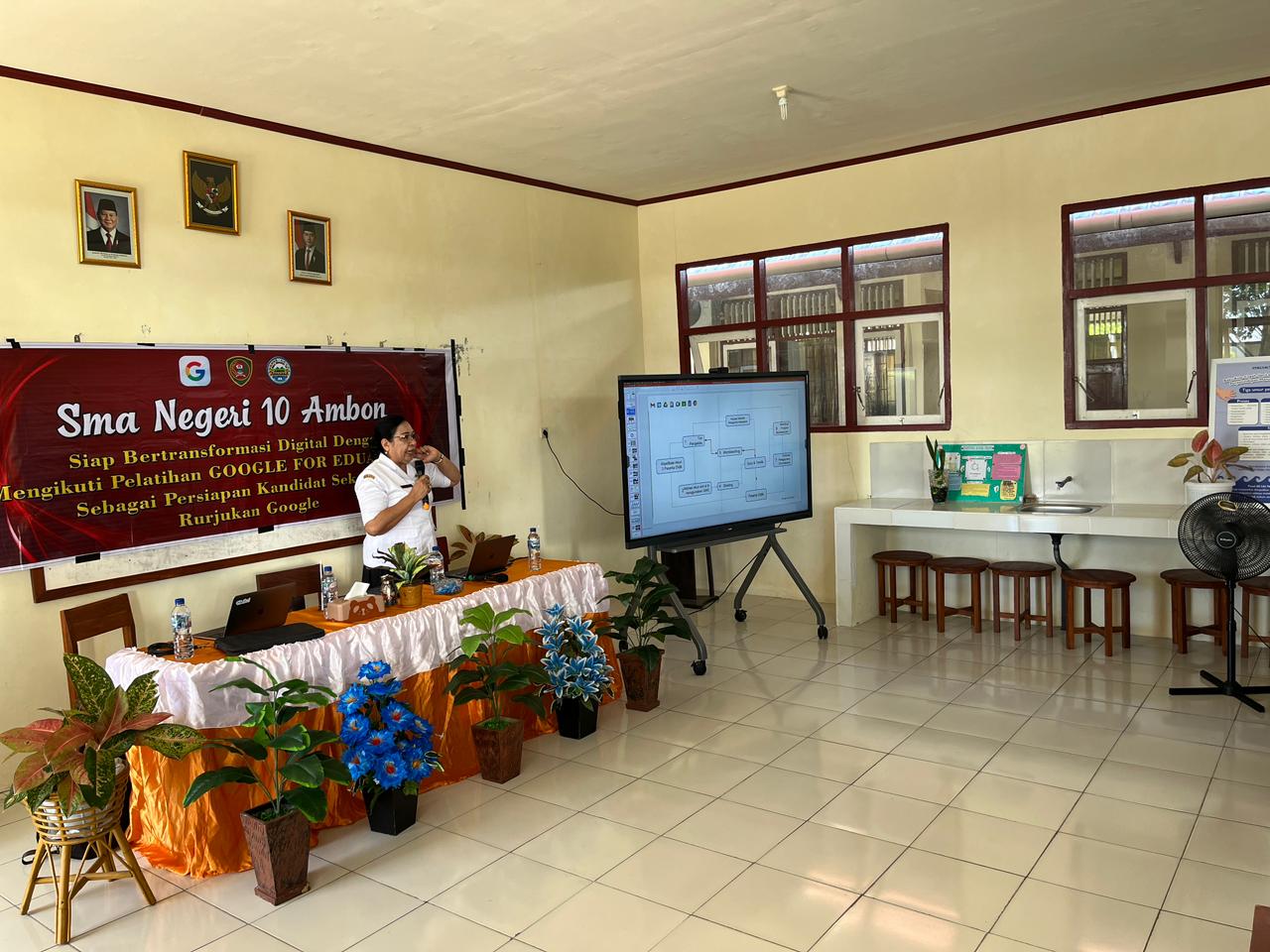AMBON – Akselerasi kompetensi pendidik melalui teknologi Google dan Gemini AI menjadi fokus utama pengimbasan di SMAN 10 Ambon. Kepala SMAN 1 Ambon, Ibu Dra. E. Laturiuw, M.Si, secara langsung memimpin tim untuk berbagi strategi kolaborasi yang telah sukses diterapkan di sekolahnya. Pendampingan teknis diberikan oleh Google Trainer, Bapak Ricky Latuhamalo, S.Pd., M.Pd., yang membantu para guru melakukan adaptasi teknologi Google secara mendalam.