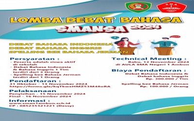 RUMPUN BAHASA SMA Negeri 1 Ambon menggelar Lomba Debat bahasa Indonesia dan debat bahasa Inggris tingkat SMA/SMK se-kota Ambon tahun 2024, yang