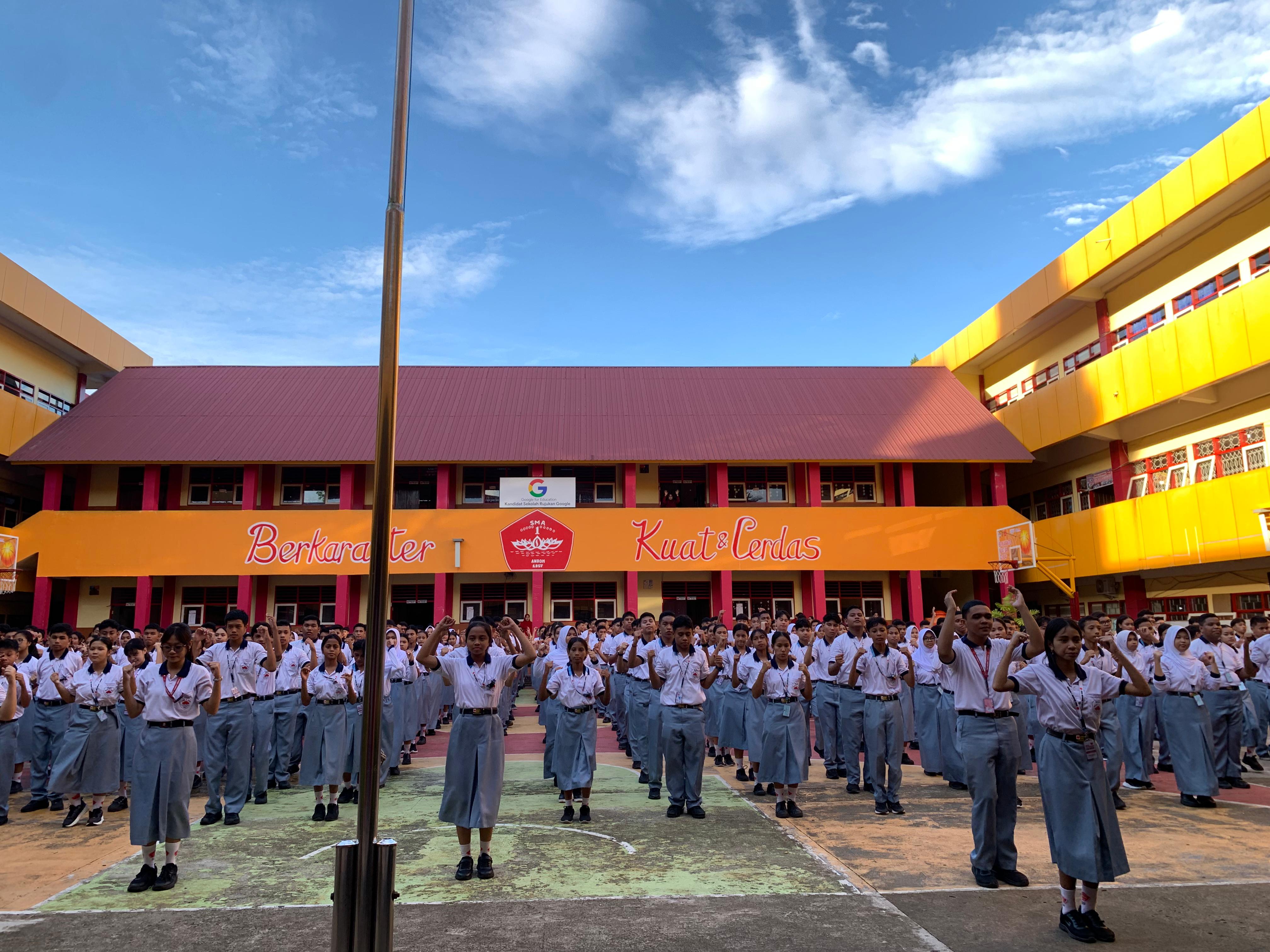 Kegiatan senam pagi dilaksanakan sebagai bagian dari upaya sekolah dalam menjaga kebugaran jasmani serta membangun semangat kebersamaan di lingkungan SMA Negeri 1 Ambon. Kegiatan ini berlangsung di halaman sekolah pada pagi hari dengan suasana yang tertib dan penuh antusias.