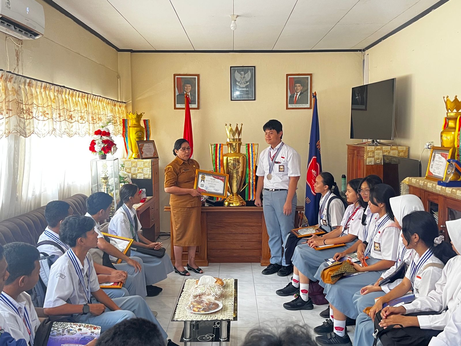 AMBON – Aura kebanggaan menyelimuti ruang kerja Kepala Sekolah SMA Negeri 1 Ambon pagi ini. Pihak sekolah secara resmi menerima penyerahan medali dari para siswa berprestasi yang baru saja berlaga di ajang bergengsi Olimpiade Sains Fakultas Sains dan Teknologi (FST).