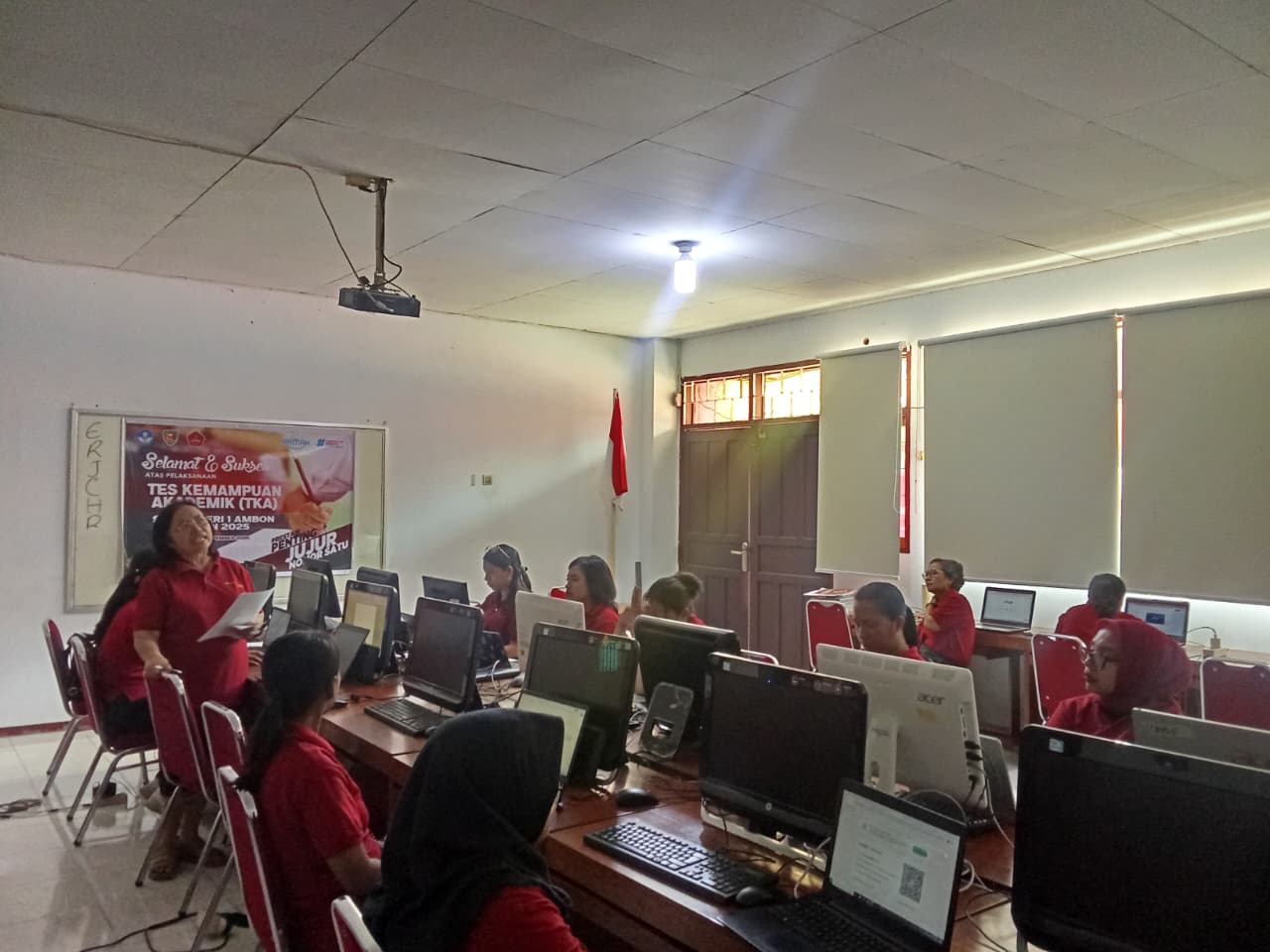 SMA Negeri 1 Ambon kembali menunjukkan komitmennya dalam meningkatkan kualitas pembelajaran melalui kegiatan Kombel (Kelompok Belajar) dengan fokus pada penggunaan Google Form dalam pembuatan tes asesmen sumatif. Kegiatan yang berlangsung di ruang laboratorium komputer ini diikuti oleh para guru dengan antusias, seluruhnya mengenakan seragam merah yang menambah kekompakan suasana pelatihan.