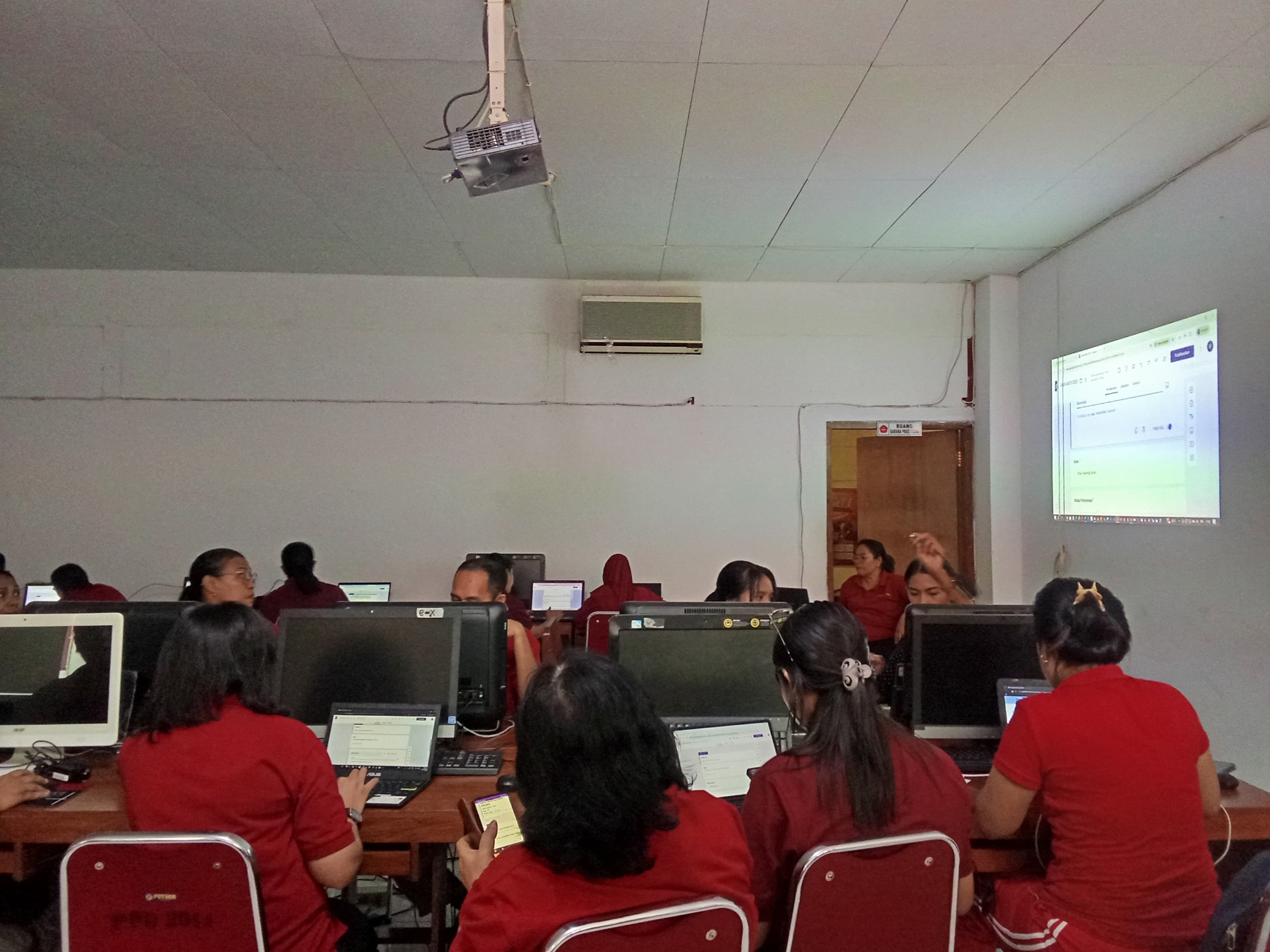 Melalui pendampingan langsung dan praktik di komputer masing-masing, para guru dilatih untuk merancang soal, mengatur format penilaian, hingga mengoptimalkan fitur-fitur Google Form agar pelaksanaan asesmen menjadi lebih efektif dan efisien. Materi juga ditayangkan melalui proyektor sehingga peserta dapat mengikuti langkah demi langkah dengan lebih jelas.
