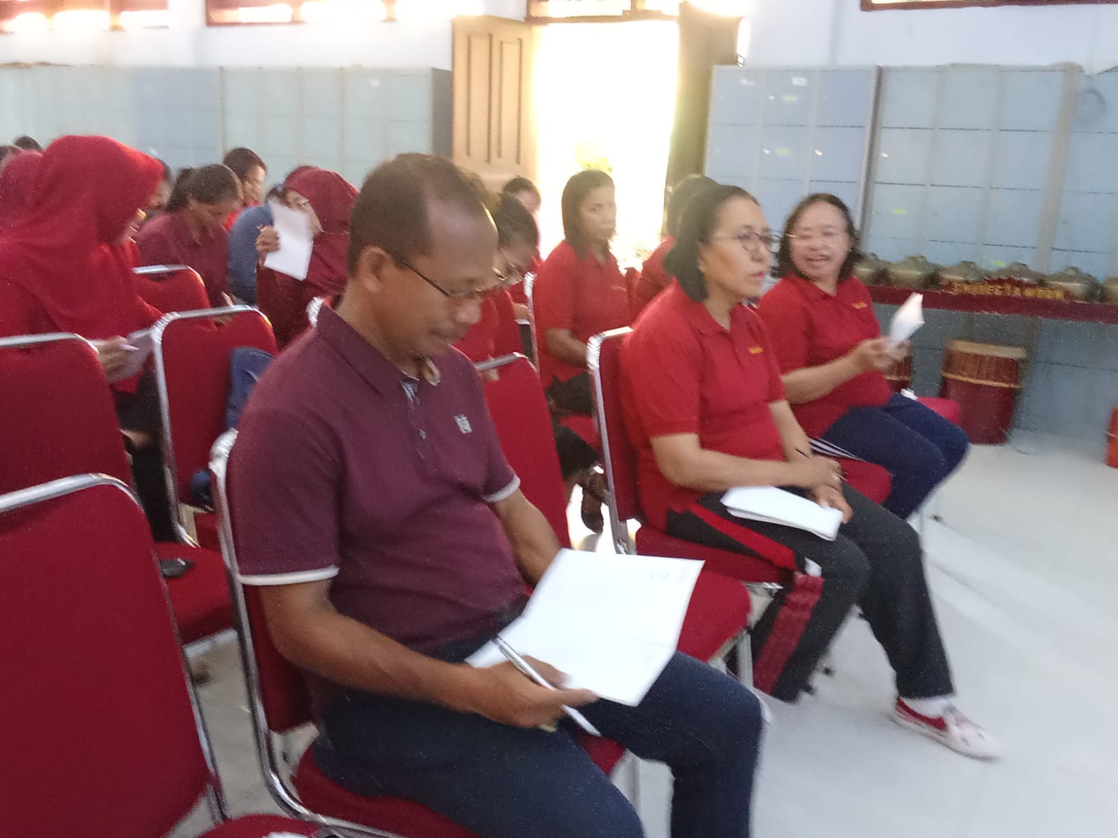 Sebagai bagian dari proses evaluasi akhir tahun, seluruh guru dan pegawai mengikuti kegiatan refleksi kinerja yang dilaksanakan secara bersama. Dalam sesi ini, setiap peserta diberikan selembar kertas kosong untuk menuliskan berbagai hambatan, tantangan, serta kendala yang dialami selama satu semester terakhir. Langkah ini dilakukan untuk menggali masukan langsung dari para pendidik dan pegawai, sehingga sekolah dapat terus meningkatkan kualitas layanan pendidikan.